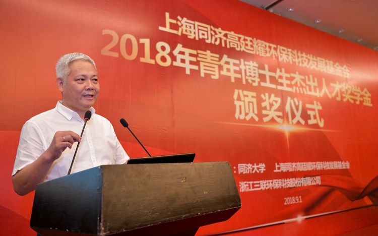 方守恩書記在致辭中代表同濟(jì)大學(xué)對獲獎(jiǎng)的各位優(yōu)秀青年博士生表示祝賀,對給予此次活動大力支持的浙江省麗水市人民政府、麗水市恒力離心機(jī)械設(shè)備有限公司以及長期支持基金會不斷發(fā)展的江蘇維爾利環(huán)??萍脊煞萦邢薰颈硎局孕牡母兄x。他說,基于對生態(tài)文明建設(shè)和環(huán)境保護(hù)重要性的認(rèn)識,在高廷耀老校長的倡議下,同濟(jì)大學(xué)于2003年正式成立了上海同濟(jì)高廷耀環(huán)保科技發(fā)展基金會。十五年來,基金會始終不忘初心,積極致力于“培養(yǎng)新一代環(huán)保專業(yè)新型人才;促進(jìn)中國環(huán)保高新技術(shù)(產(chǎn)品)的研制和科技交流與發(fā)展”,為我國高級環(huán)保青年人才培養(yǎng)和環(huán)保產(chǎn)業(yè)可持續(xù)發(fā)展,發(fā)揮了積極的推動和引導(dǎo)作用。黨的十九大報(bào)告提出,實(shí)現(xiàn)“兩個(gè)一百年”奮斗目標(biāo)和中華民族偉大復(fù)興的中國夢,是要把我國建成富強(qiáng)民主文明和諧美麗的社會主義現(xiàn)代化強(qiáng)國。美麗中國建設(shè),需要各級政府、企業(yè)和高校持續(xù)不懈的努力,更需要青年一代切實(shí)承擔(dān)起應(yīng)有的歷史責(zé)任。